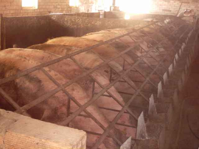 Compartimentos múltiples para la gestación, en los que las cerdas están solas para que no sean molestadas, son parecidos a los departamentos destinados a los partos y la lactancia.